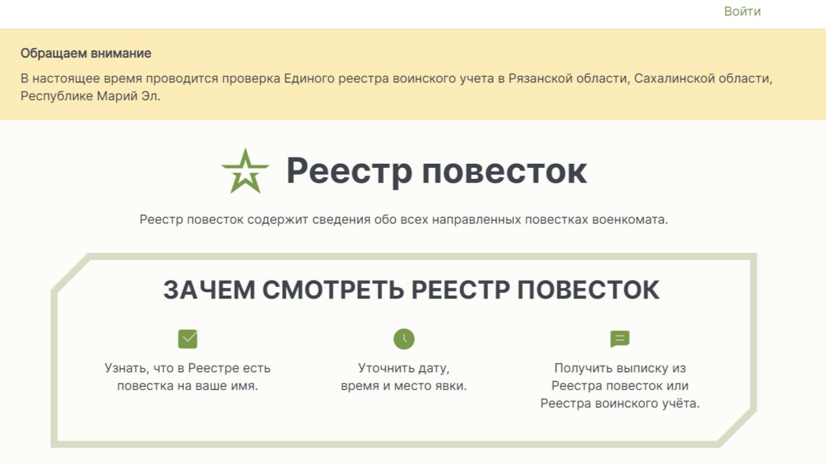 Ранее власти этих трех регионов объявляли о запуске с 15 сентября эксперимента по рассылке электронных повесток, получать они их должны были на сайте реестра. «Агентство» обращало внимание , что по состоянию на вечер 16 сентября портал всё еще не работал.