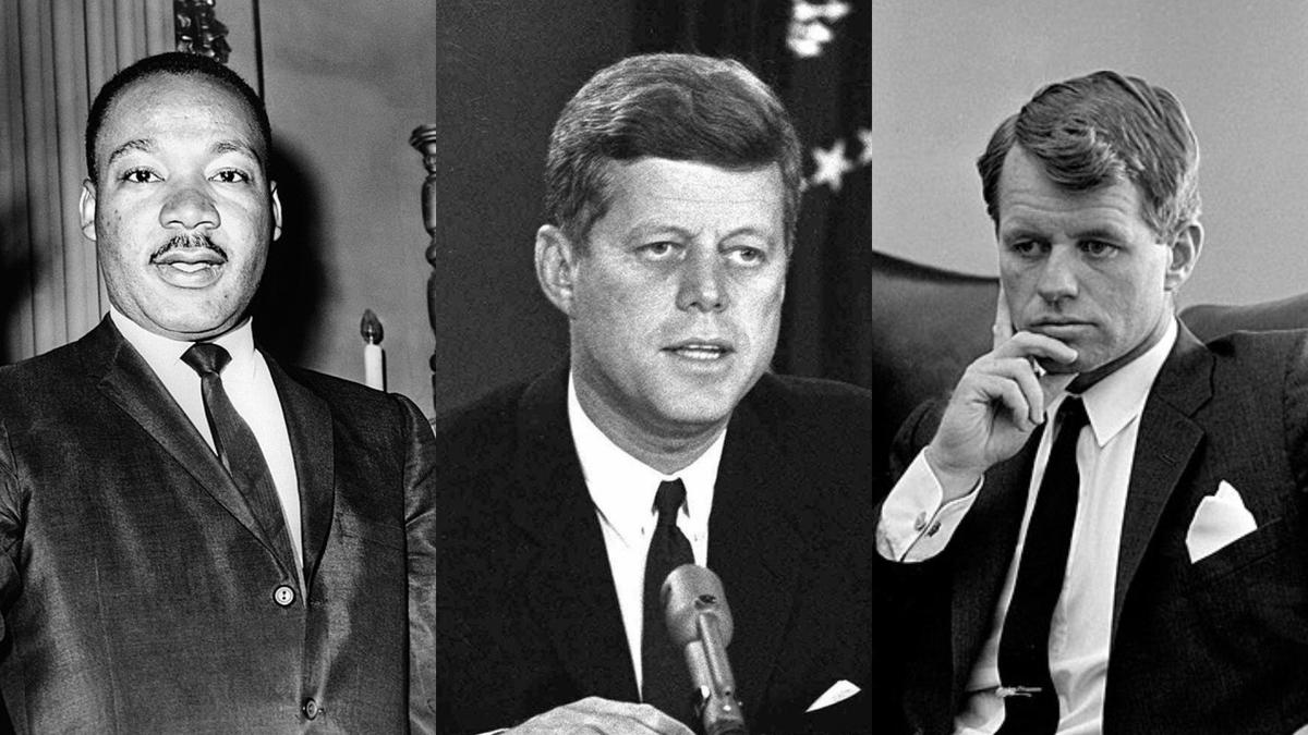 Джон Кеннеди был убит Ли Харви Освальдом в Далласе во время своего президентского срока в 1963 году. Его младший брат Роберт был ранен палестинским террористом в 1968 году во время публичной агитации и умер в больнице в Лос-Анджелесе. Мартин Лютер Кинг был застрелен Джеймсом Эрлом Реем в Мемфисе в 1968 году.