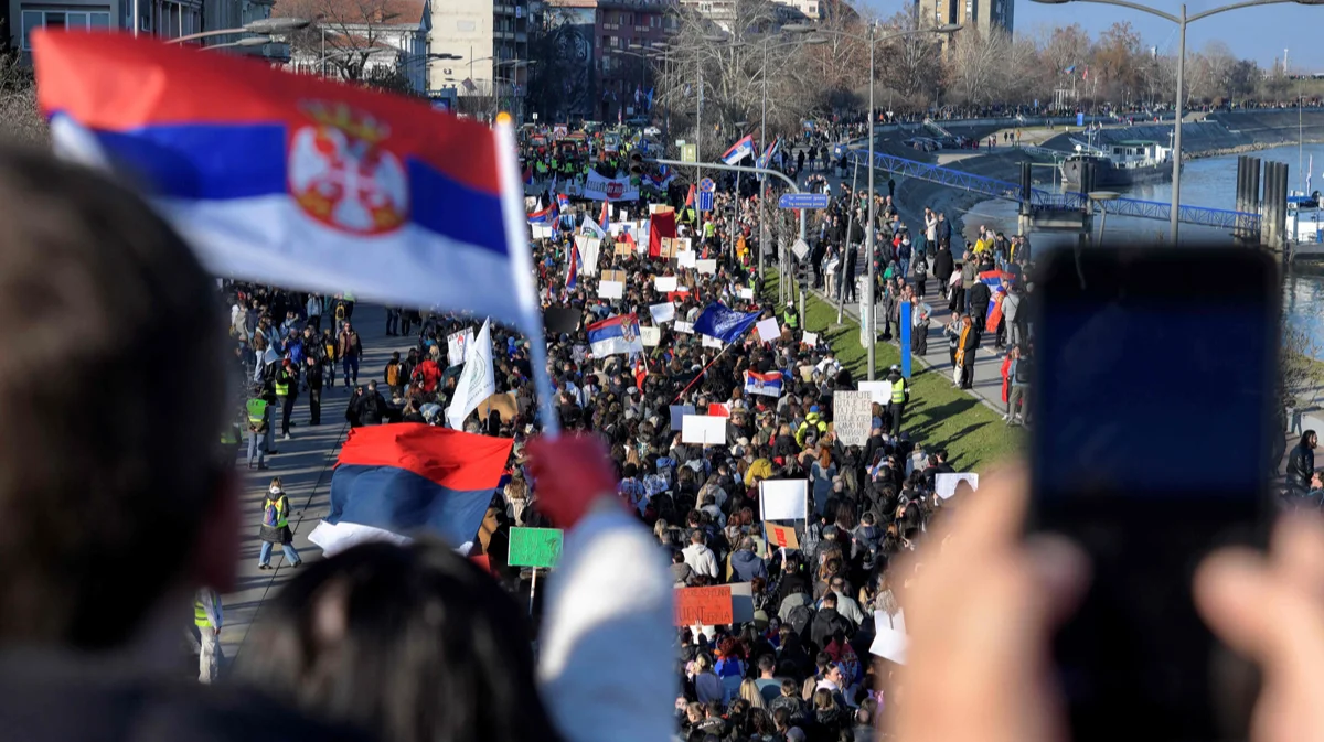 — Мы хотим улучшения ситуации во всей стране, — говорит мама (ее зовут Ива) на сербском, а сын переводит на английский. — Мы хотим справедливости, хотим перемен. Протест заряжает нас энергией и дает надежду, что мы будем жить лучше.
