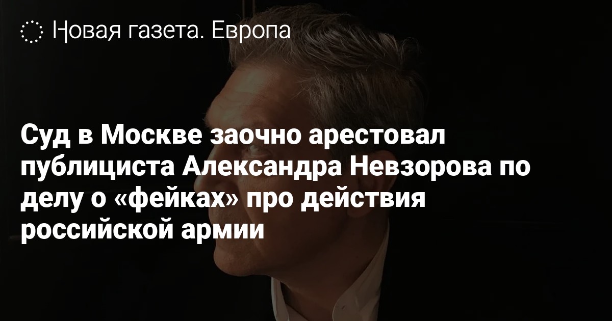 Басманный районный суд Москвы заочно арестовал публициста Александра Невзорова, которому вменяют в вину распространение «фейков» про действия Вооруженных сил России. Об этом сообщает объединенная пресс-служба столичных судов общей юрисдикции.