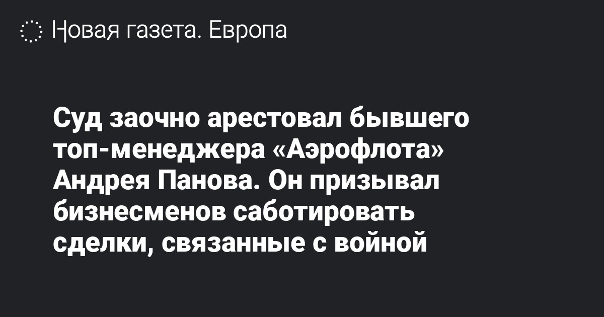 Хорошевский районный суд Москвы заочно арестовал бывшего заместителя гендиректора «Аэрофлота» по стратегии и маркетингу Андрея Панова. На соответствующую карточку дела на сайте суда обратил внимание РБК.