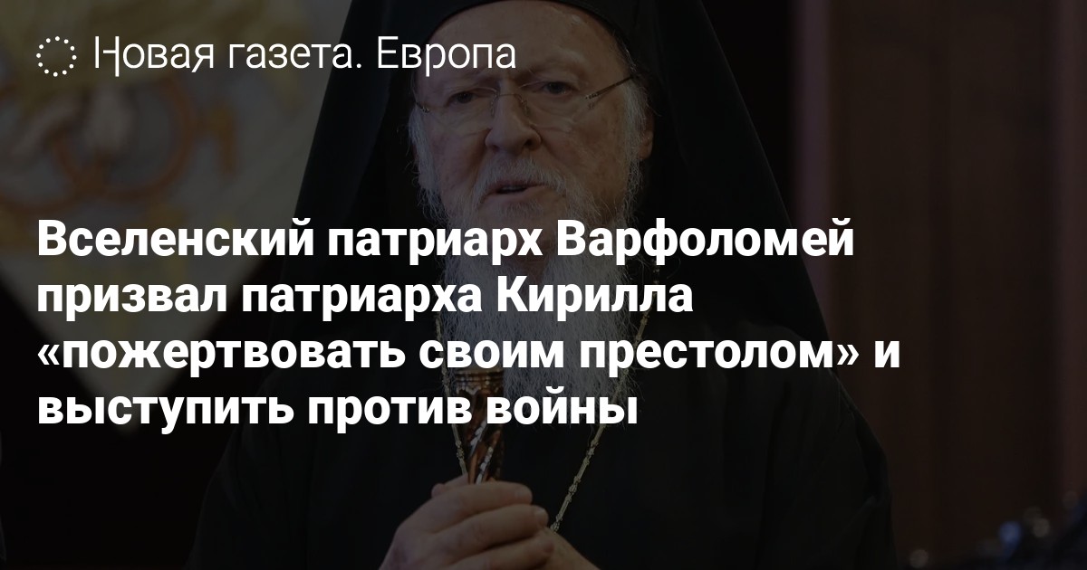 Вселенский патриарх Варфоломей призвал патриарха Кирилла «пожертвовать своим престолом» и выступить против войны
