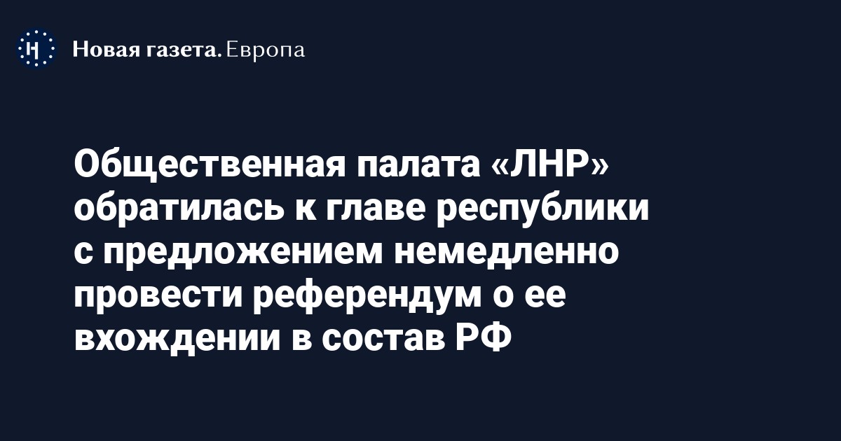 Общественная палата самопровозглашенной Луганской Народной республики обратилась к ее главе с инициативой немедленно провести референдум о признании ее субъектом Российской Федерации. Об этом пишет РИА Новости.