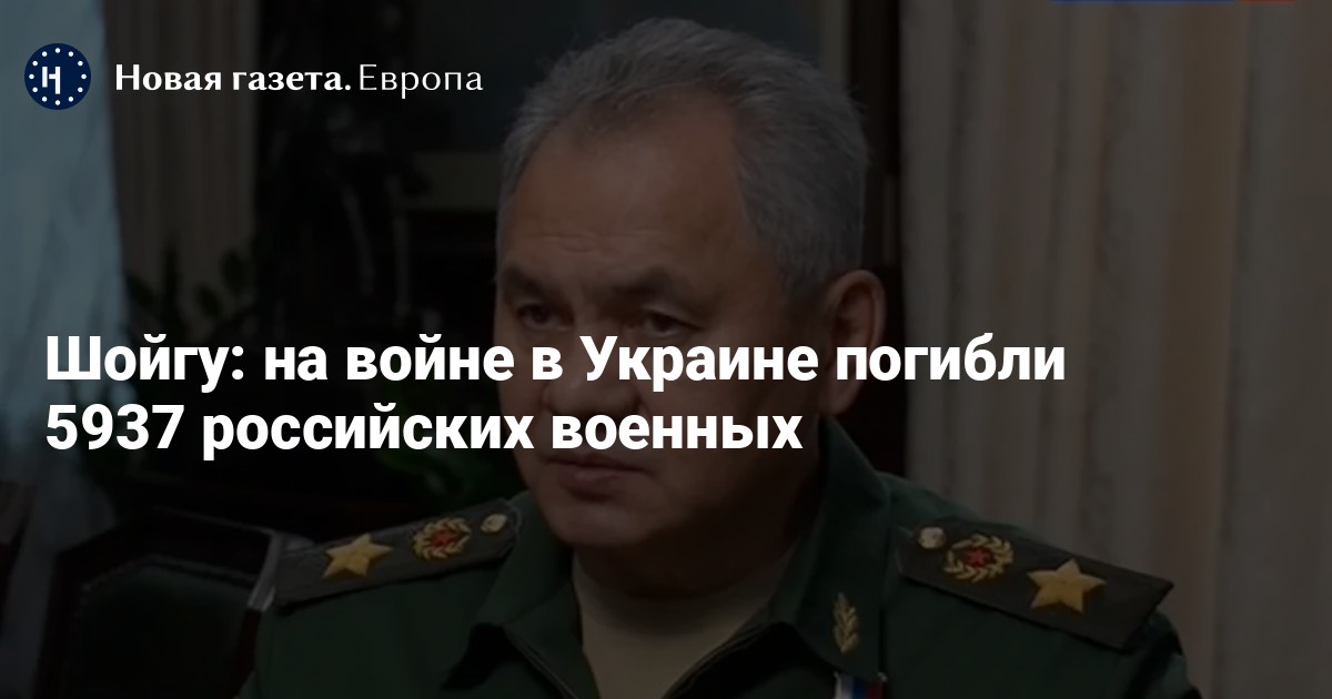 Глава Минобороны РФ Сергей Шойгу заявил, что во время войны в Украине погибли 5937 российских военнослужащих. Об этом он сообщил в эфире телеканала «Россия-1».