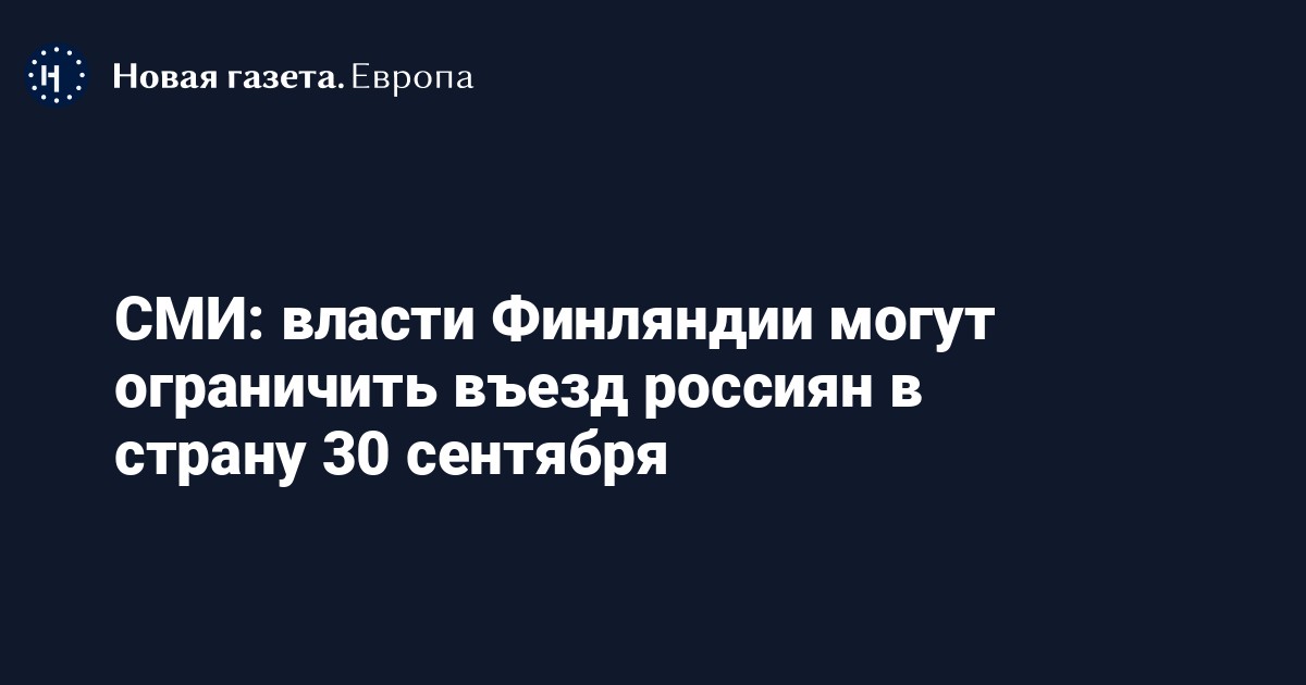 Правительство Финляндии планирует закрыть границу для россиян в ночь на 30 сентября, если не скорректирует согласованные ранее сроки. Об этом пишет финская газета Helsingin Sanomat.