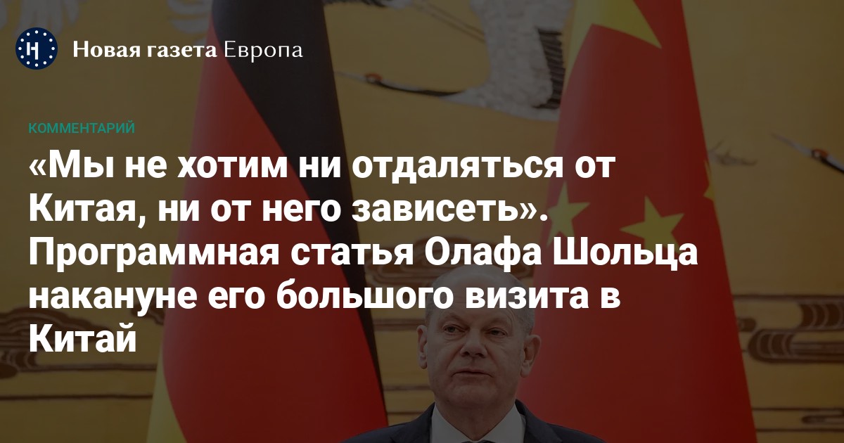 В-пятых, я еду в Пекин не только как канцлер Германии, но и как европеец. Не для того, чтобы говорить от имени всей Европы, — это было бы самонадеянно и неправильно, — а потому, что политика Германии в отношении Китая может быть успешной только тогда, когда она увязана с политикой всей Европы. Поэтому в преддверии моего визита мы тесно общались с нашими европейскими партнерами, включая президента Франции Макрона, и с нашими трансатлантическими друзьями.