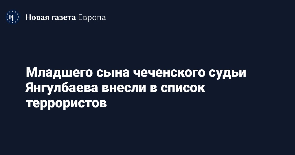 Росфинмониторинг включил Байсангура Янгулбаева — младшего сына отставного судьи Верховного суда Чечни Сайди Янгулбаева и находящейся в СИЗО по обвинению в нападении на полицейского Заремы Мусаевой — в реестр террористов и экстремистов.