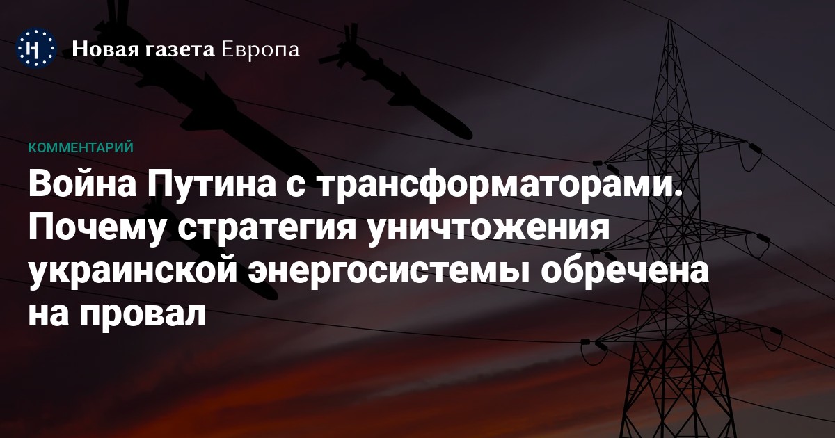 Так же как «газовая война», объявленная Путиным, так же как и отрезанные глаза животных, разосланные послам Украины по миру, как взорванный «Северный Поток», как «Киев за три дня», и прочее, и прочее, война Путина с трансформаторами демонстрирует две вещи: отсутствие тормозов и эмпатии, с одной стороны, и полное отсутствие понимания военной реальности, с другой.