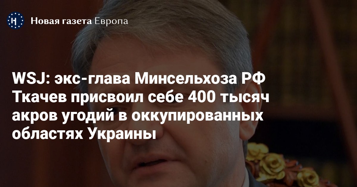 Компания экс-министра сельского хозяйства России (2015-2018) Александра Ткачева экспроприировала в общей сложности 400 тысяч акров сельхозугодий на занятых российскими войсками территориях Украины. Об этом со ссылкой на украинских предпринимателей и данные разведки сообщает The Wall Street Journal.