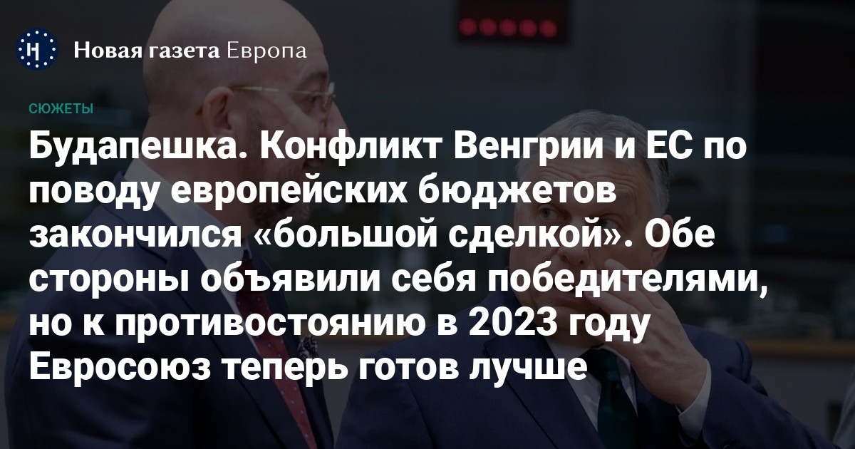 Кроме них, начиная еще с прошлого лета, Будапешт должен был получать выплаты в размере 5,8 млрд евро из упомянутого выше фонда восстановления. Однако ЕС так и не утвердил Венгрии план, по которому эти деньги могли быть потрачены, а без него — деньги остаются в бюджете Евросоюза. В этом декабре истекал крайний срок, когда план мог быть согласован сторонами, и в отсутствии компромисса деньги были бы безвозвратно утрачены для Венгрии. В результате большой сделки ЕС заменил основное условие, после которого средства будут разблокированы: Венгрия и Еврокомиссия должны подписать партнерское соглашение. Это означает, что шанс получить деньги Будапешт сохранил, но о сроки и параметры этого партнерского соглашения останутся на усмотрение Еврокомиссии.