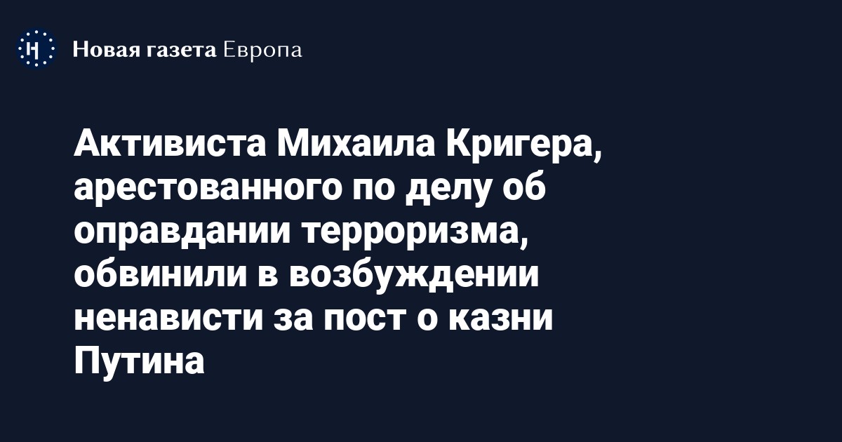 Активиста Михаила Кригера, арестованного по делу об оправдании терроризма, обвинили в возбуждении ненависти за пост о казни Путина