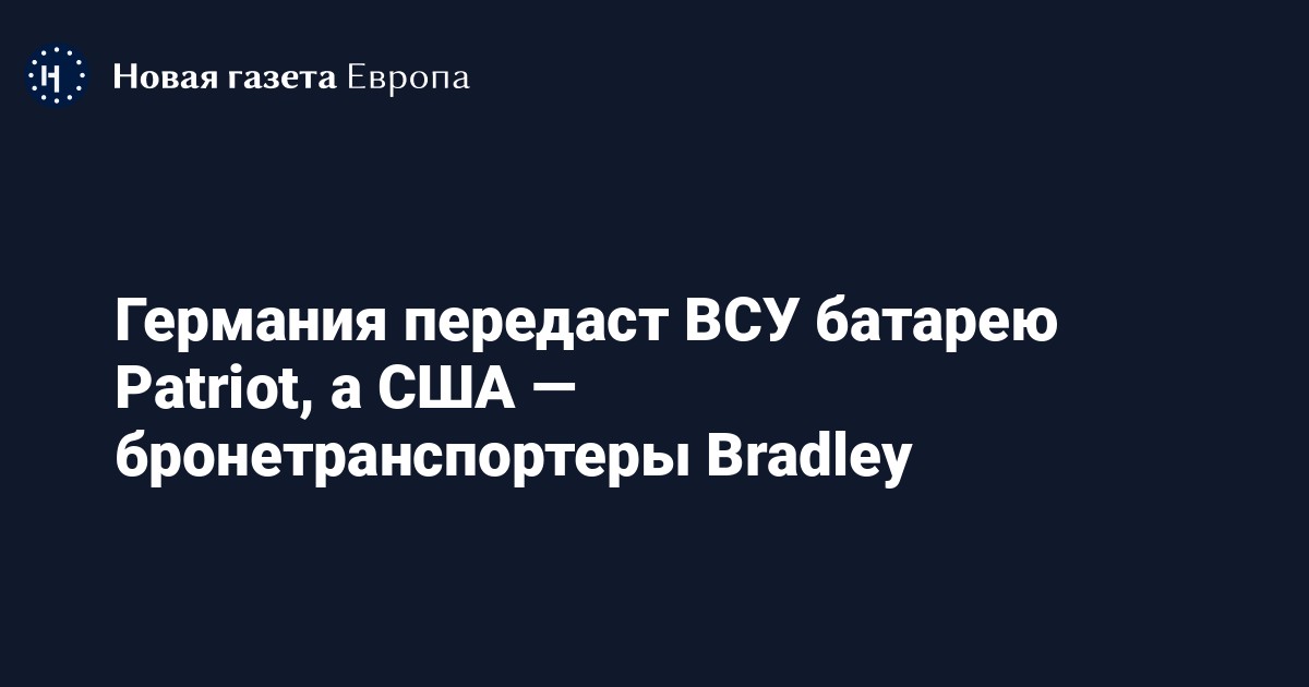 Украине отправят боевые машины пехоты (БМП) Bradley и Marder американского и немецкого производства. Кроме того, Германия собирается передать Киеву дополнительную батарею зенитно-ракетных комплексов (ЗРК) Patriot.