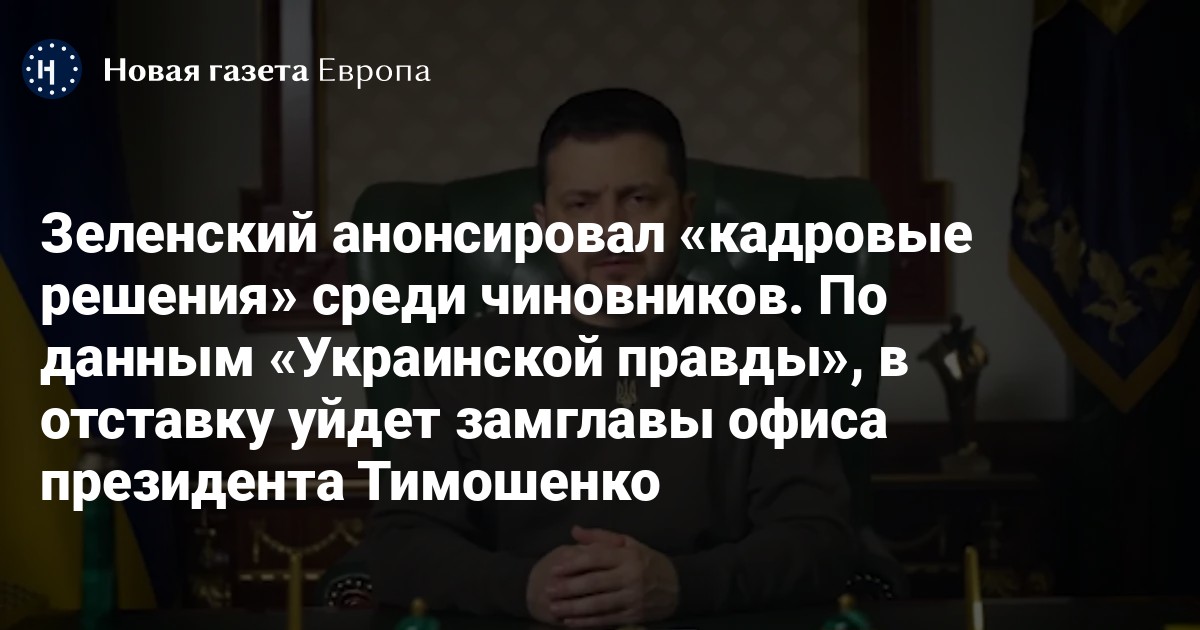 По данным «Украинской правды», замглавы офиса президента Украины Кирилл Тимошенко написал заявление об увольнении. На его место, как пишет издания со ссылкой на источники, планируют назначить главу военной администрации Киевской области Алексея Кулебу.