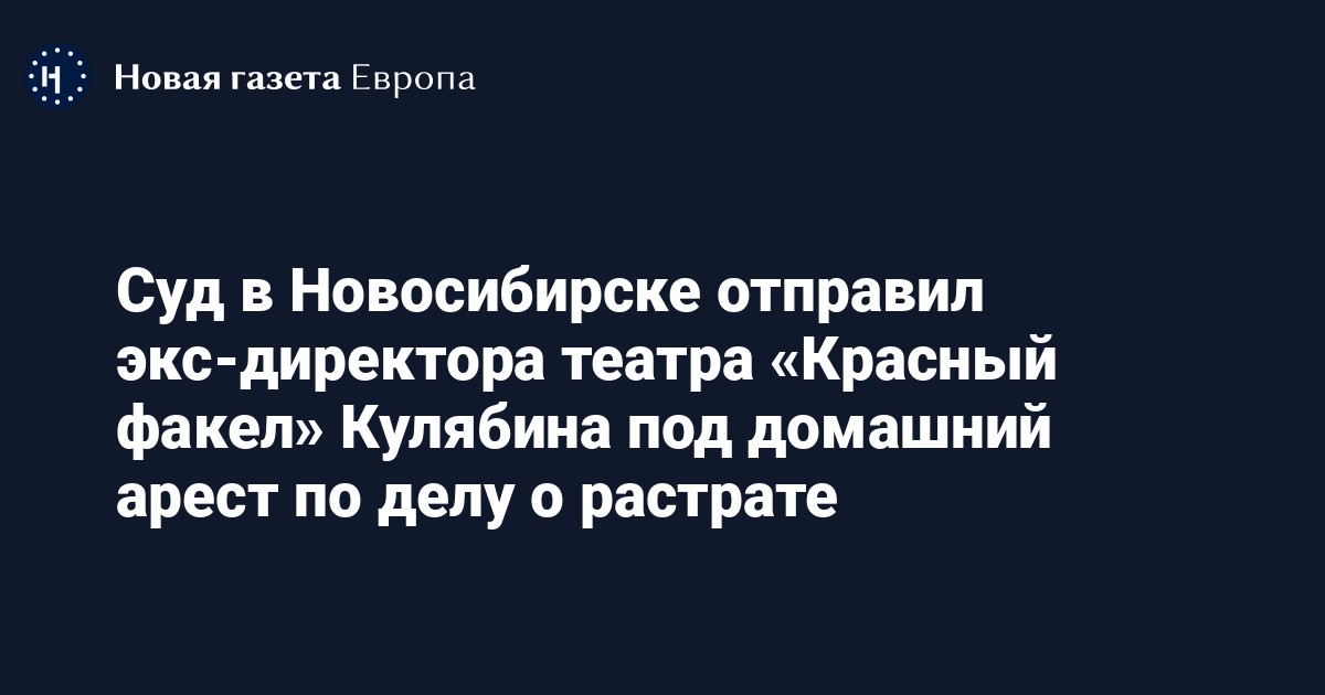 Центральный районный суд Новосибирска отправил под домашний арест бывшего директора новосибирского театра «Красный факел» Александра Кулябина по делу о растрате. Об этом заявил адвокат Сергей Бадамшин.