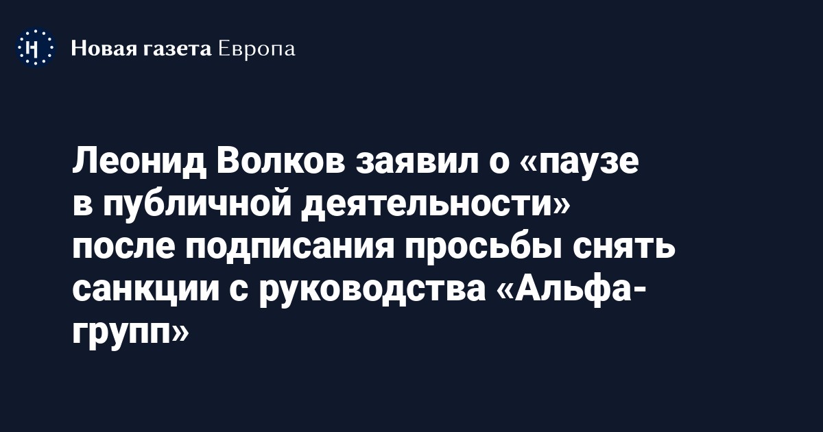 Леонид Волков заявил о «паузе в публичной деятельности» после подписания просьбы снять санкции с руководства «Альфа-групп»