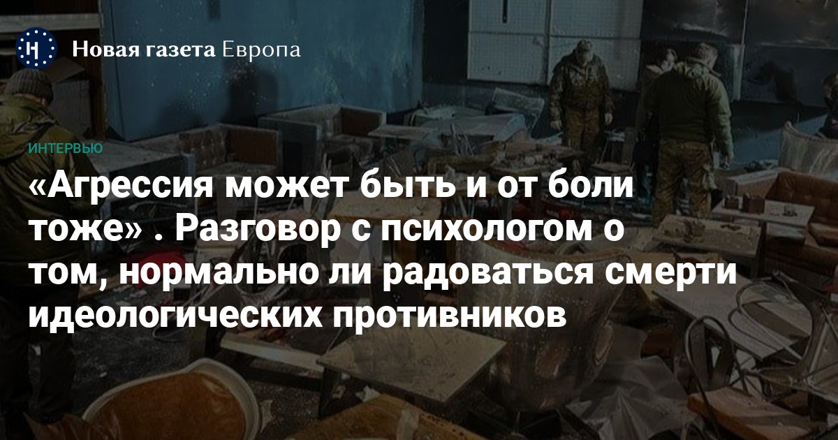 После убийства Татарского пользователи в соцсетях разделились на две группы: одни радовались его смерти и хвалили Трёпову, другие же утверждали, что так ярко выражать свои эмоции — даже если погиб идеологический противник или просто плохой человек — аморально. «Новая газета Европа» поговорила с психологом, автором и тренером проекта «Психология стресса для журналистов» Ольгой Кравцовой о том, откуда возникает радость от смертей «врагов» у россиян и нормально ли это.