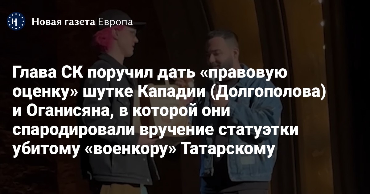 Глава СК поручил дать «правовую оценку» шутке Кападии (Долгополова) и Оганисяна, в которой они спародировали вручение статуэтки убитому «военкору» Татарскому