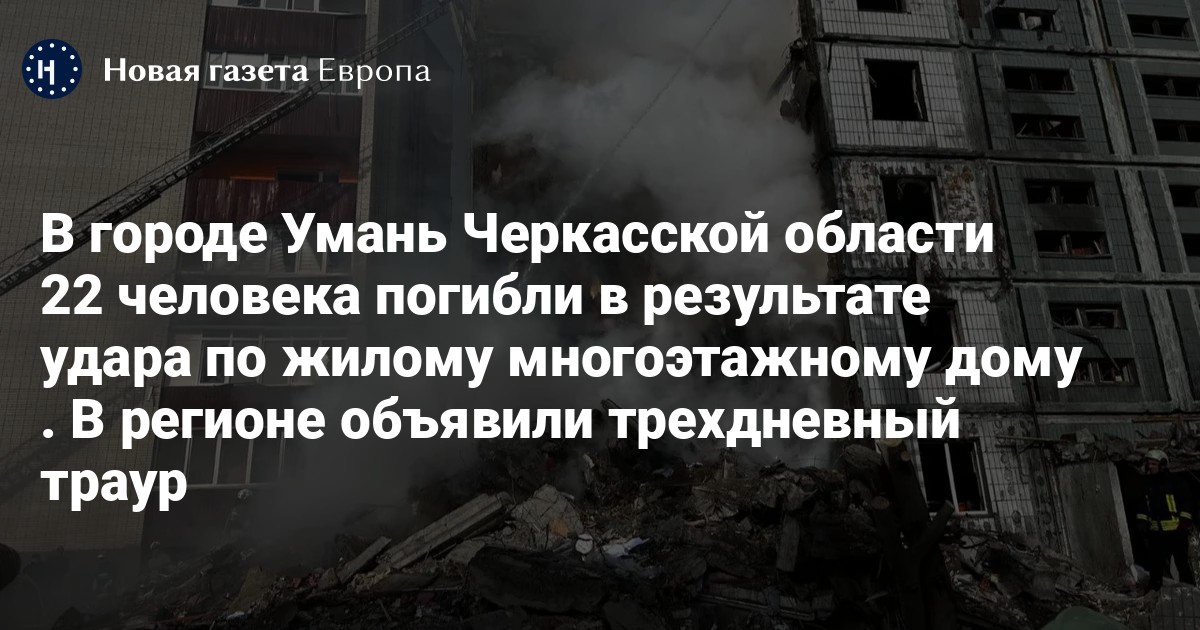 В Умани под ракетный обстрел попали жилой девятиэтажный дом и складские помещения, сообщил глава Черкасской ОВА Игорь Табурец. По последним данным, погибли 22 человека.