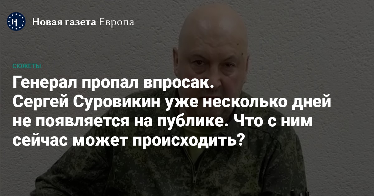 Командующий российскими войсками в Украине и, по сути, второй человек после Сергея Шойгу на этой войне, генерал Сергей Суровикин пропал еще 24 июня. Последний раз он публично выступил с видеообращением к Евгению Пригожину. После этого в нескольких телеграм-каналах появлялись сообщения то об аресте генерала, то о задержании и допросах из-за симпатии к нему со стороны Евгения Пригожина. «Новая газета Европа» попыталась разобраться в том, что происходит с генералом после мятежа.
