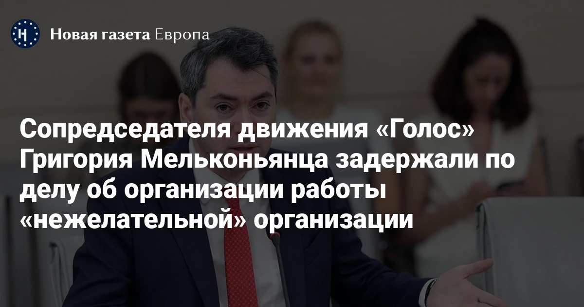 Сопредседателя движения «Голос» Григория Мельконьянца задержали по делу об организации работы «нежелательной» организации. Об этом сообщает Дождь.