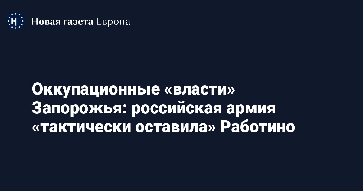 Российская армия «тактически оставила» населенный пункт Работино в Запорожской области. Об этом заявил назначенный Россией «глава» оккупированной части Запорожья Евгений Балицкий в эфире Соловьев Live.