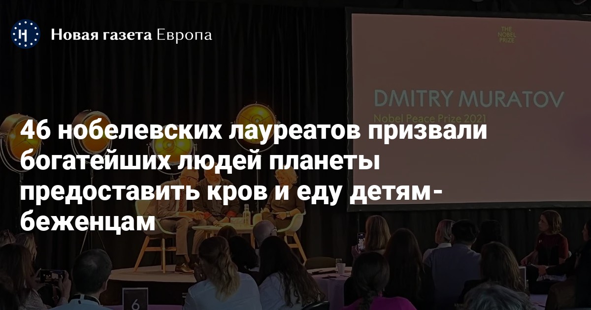 Во время Саммита учителей Нобелевского музея в Стокгольме обнародовано письмо 46 нобелевских лауреатов, которые призвали богатейших людей мира помочь детям-беженцам. Заявление от лица группы нобелевских лауреатов сделал лауреат премии мира 2021 года Дмитрий Муратов.