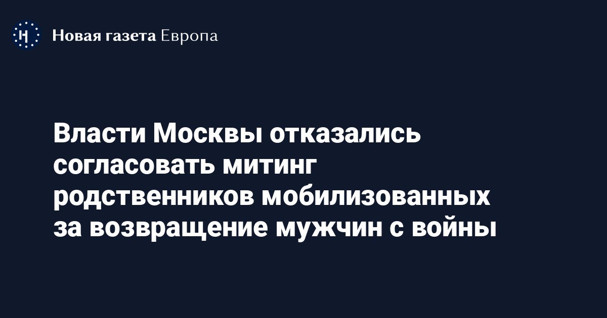Власти Москвы не согласовали митинг родственников мобилизованных из-за «эпидемиологической обстановки». Об этом сообщили в организации «Путь домой», которая подавала заявление на проведение акции.