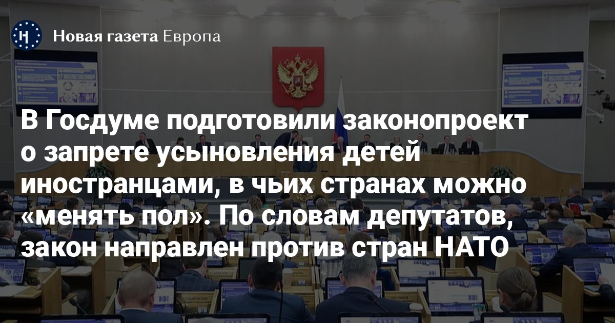 Он подчеркнул, что речь идет как о «смене пола» в документах, так и о хирургических операциях. По словам депутата, этот закон необходим, чтобы «гарантировать усыновленному ребенку, что он не окажется в однополой семье».