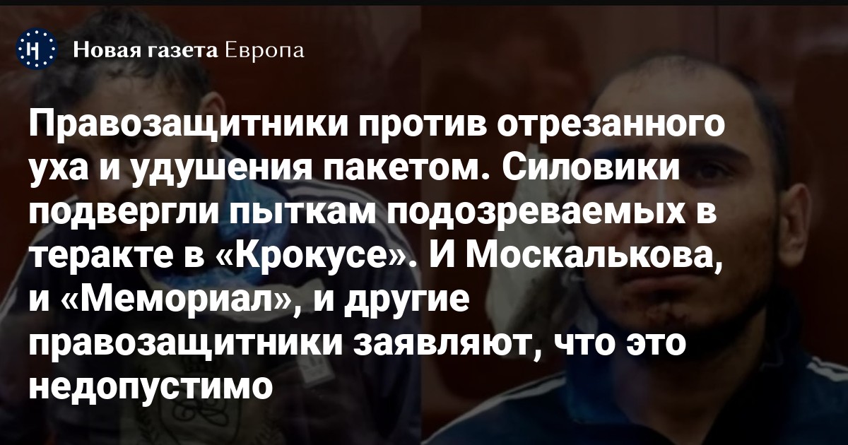После теракта в подмосковном «Крокус Сити Холле» ФСБ отчиталась о задержании четверых возможных исполнителей нападения. В сети появились фото и видео с пытками подозреваемых — одному из них отрезали ухо, другому выбили глаз, третьего били током, а четвертому надевали на голову пакет. Сначала о недопустимости пыток заявили независимые правозащитники, а затем и уполномоченная по правам человека Татьяна Москалькова. При этом некоторые члены СПЧ и ОНК одобрили подобные методы.