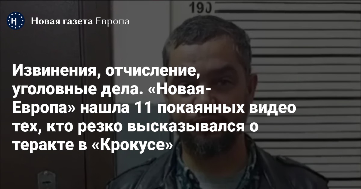 Пользователи соцсетей, которые после теракта в «Крокус Сити Холле» шутили или резко высказывались о произошедшем, публично извиняются на камеру. «Новая газета Европа» нашла 11 таких роликов. Это помогает не всегда: известно по меньшей мере об одном уголовном деле, а также одном отчислении из вуза.