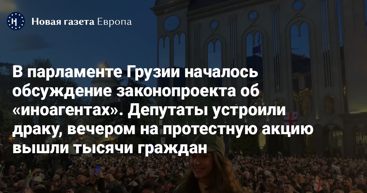 В парламенте Грузии началось обсуждение законопроекта об «иноагентах». Депутаты устроили драку, вечером на протестную акцию вышли тысячи граждан