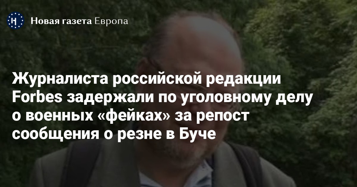 Журналиста российской редакции Forbes Сергея Мингазова задержали по уголовному делу о военных «фейках» за репост сообщения о резне в Буче. Об этом сообщили в редакции со ссылкой на адвоката журналиста.