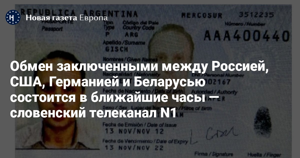 Обмен заключенными между Россией, США, Германией и Беларусью состоится в ближайшие часы. Об этом сообщает словенский телеканал N1