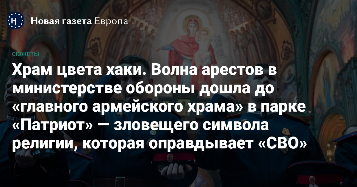 После серии арестов в руководстве минобороны РФ «снята печать» с духовной скрепы, соединявшей армию и РПЦ. Оказывается (кто бы мог подумать!), самый грандиозный из монументальных проектов Сергея Шойгу — «Главный храм Вооруженных сил Российской Федерации» (ГХ ВС РФ) в подмосковном парке «Патриот» — был гигантской «схемой», обогащавшей генералитет.