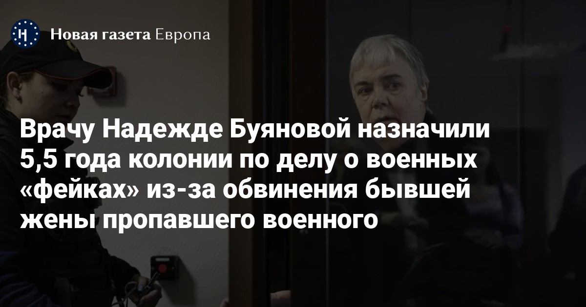 Тушинский районный суд назначил 5 лет и 6 месяцев колонии педиатру Надежду Буянову по делу о военных «фейках» из-за обвинения бывшей жены пропавшего во время «СВО» военного, выяснила «Новая газета Европа» .