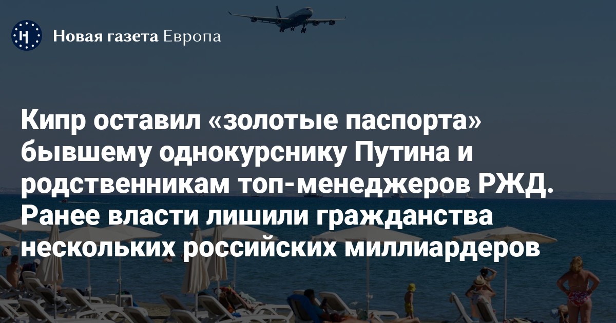 Обладателями «золотых паспортов» — инвестиционного гражданства Кипра — продолжают оставаться бывший однокурсник Владимира Путина по Ленинградскому государственному университету Николай Егоров, а также родственники топ-менеджеров Российских железных дорог (РЖД) Сергей Тони и Владимир Якунин, выяснила «Новая-Европа».