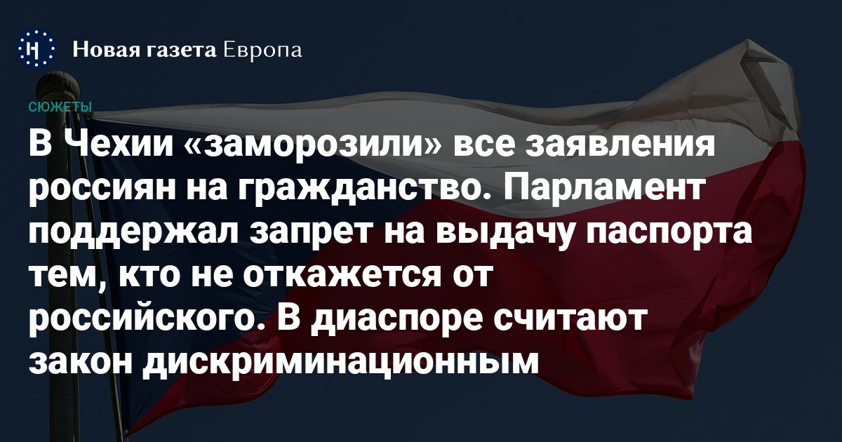 Парламент Чехии принял поправку в закон Lex Ukrajina, согласно которой чешское гражданство будет предоставляться гражданам России только в том случае, если они откажутся от российского паспорта.