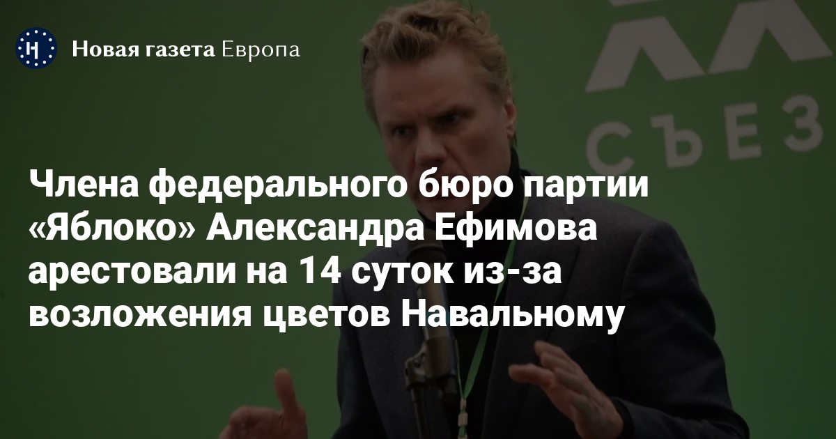 Волжский городской суд арестовал на 14 суток члена федерального бюро партии «Яблоко» Александра Ефимова за возложение цветов в память о политике Алексее Навальном. Об этом «Новой-Европа» сообщили близкие Ефимова.