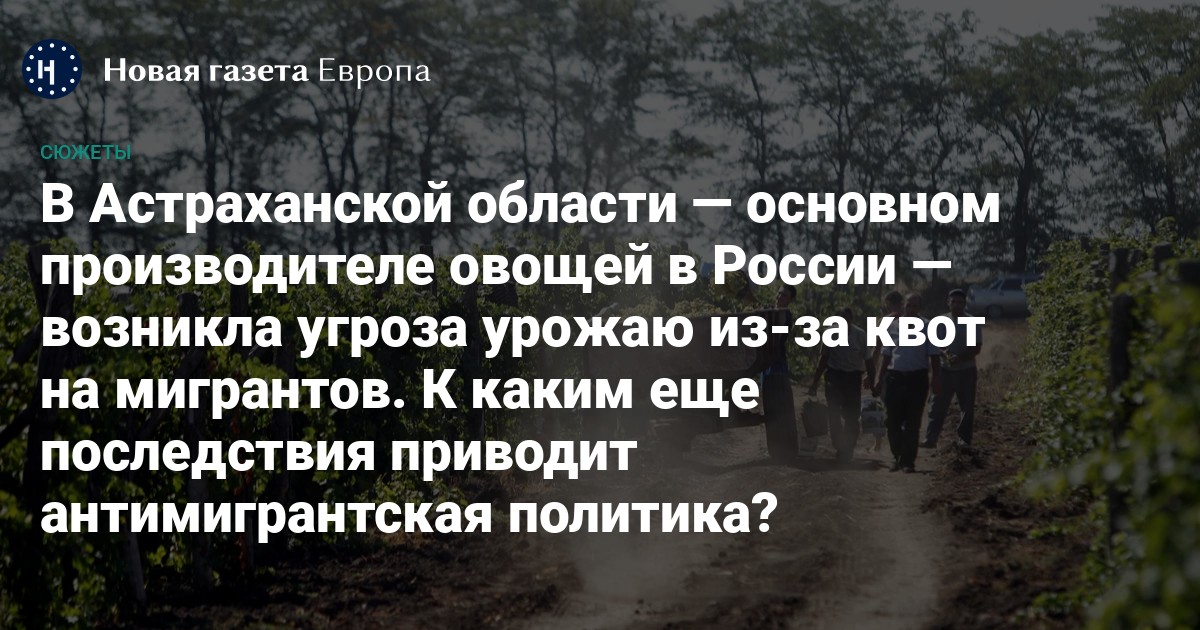«В условиях жесткого дефицита неквалифицированной рабочей силы фермеры значительно сократят количество посевных площадей, что напрямую повлияет на обеспечение продовольственной безопасности не только Астраханской области, но и Российской Федерации в целом»,