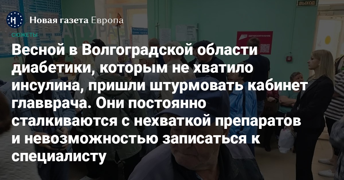 Подобные проблемы типичны не только для Камышина. Владимир, житель Волжского — второго по величине города Волгоградской области, — жалуется, как тяжело попасть к терапевту, который выписывает рецептурные препараты. «Небольшие перебои инсулина случаются, но они бывали и раньше, — рассказал он “Новой-Европа”. — Намного сложнее стало с записью к врачам, конечно. Если раньше можно было через электронные сервисы записаться, то сейчас нужно по телефону. Попасть на прием стало гораздо сложнее». По словам мужчины, люди стараются получать лекарства заранее или покупают инсулин за свой счет.