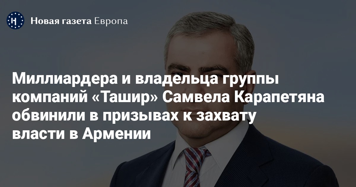 В Армении владельцу российской группы компаний «Ташир» и миллиардеру Самвелу Карапетяну предъявили обвинение в публичных призывах к захвату власти (ст. 422 УК Армении), сообщает армянское издание News.am.