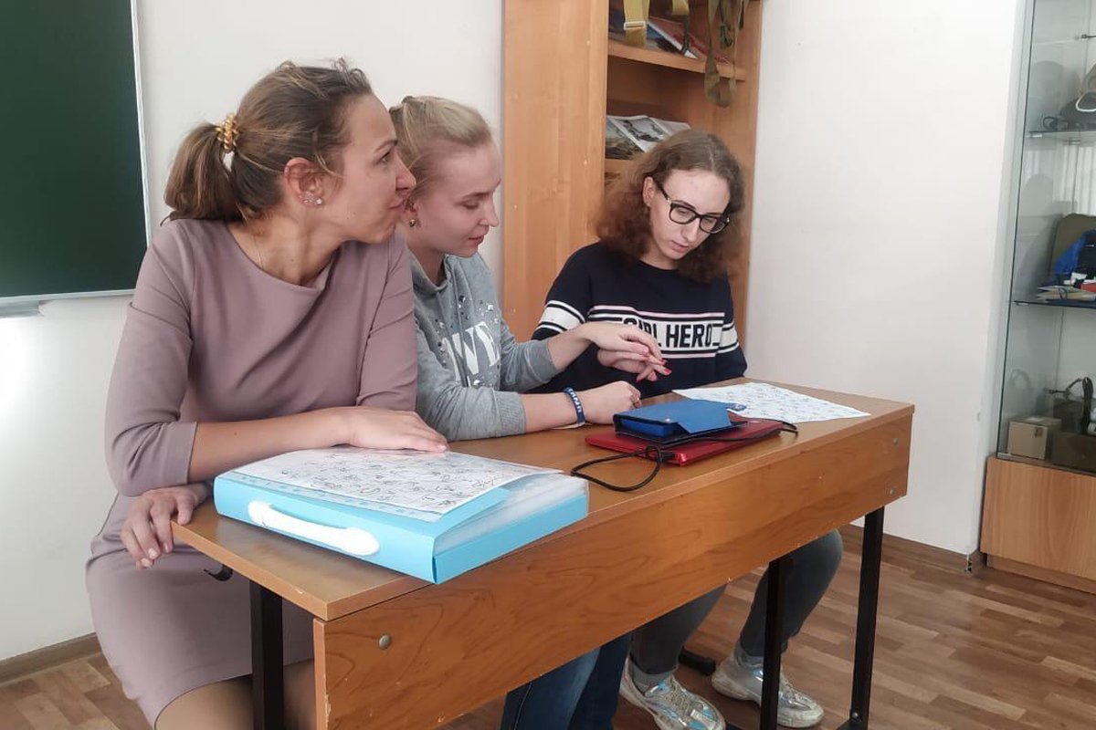 Когда Алена училась на первом курсе, Дарья вместе с Еленой Федосеевой, директором благотворительного фонда «Дом слепоглухих» (реабилитационный центр, где помогают взрослым слепоглухим, незрячим и глухим людям), приехали в ее колледж и провели для ее однокурсников мастер-класс. На нем они немного рассказали о жизни слепоглухих людей, показали студентам дактильную азбуку, чтобы они могли общаться с Аленой, и предложили потренироваться. «Дактильную азбуку можно запросто выучить за 40 минут, например, я сама в свое время выучила ее во время поездки в метро, — рассказывает Дарья. — А вообще, мы всё это затеяли, чтобы проложить мостик между Аленой и остальными студентами. В конце мастер-класса Алена принимала у однокурсников своего рода экзамен. Мы сказали: если вам что-то непонятно, вы можете у нее спросить». После этого действительно некоторые студенты подходили на переменах пообщаться с Аленой с помощью дактилологии, с некоторыми она стала общаться во “Вконтакте”».
