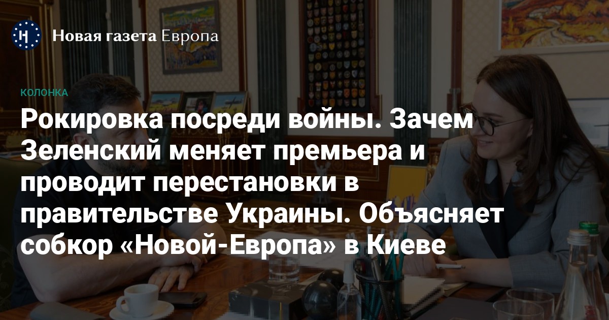 Пояснение происходящего я нашла на фейсбук-странице правоведа Андрея Магеры, многолетнего заместителя главы Центральной избирательной комиссии Украины. Магера замечает, что менять правительство во время военного положения в стране можно: это назначаемый, а не избираемый (гражданами) состав высшего государственного органа. С юридической точки зрения, продолжает он, действия президента (фактически презентация нового премьера, пока предыдущий — на своем рабочем месте) некорректны. Вместе с тем, кандидатуры на должности министров иностранных дел и обороны глава государства, согласно Конституции, предлагает Раде по собственной инициативе, а всех остальных членов правительства — премьер-министр.