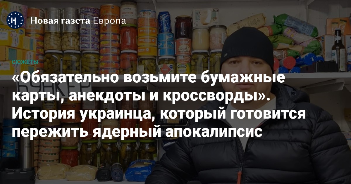 Пока одни надеются дожить до утра, другие готовятся к худшему. Они полагают, что война в любой момент может закончиться ядерным ударом. Тогда рассчитывать можно будет только на себя. «Новая газета Европа» рассказывает историю человека, который решил выжить и знает, как это сделать.