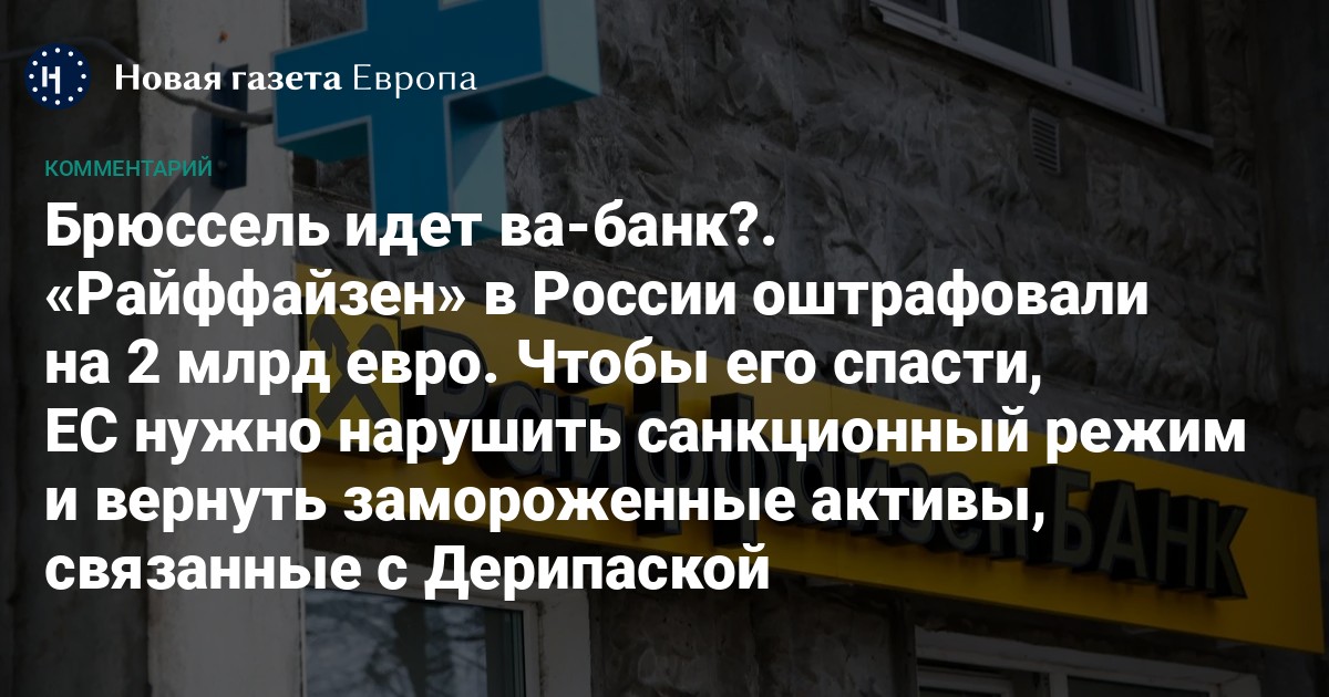 Австрия просит Евросоюз отдать банку «Райффайзен» подсанкционные активы, которые связывают с олигархом Олегом Дерипаской, чтобы компенсировать штраф на 2 млрд евро, полученный банком в российском суде. Если Брюссель согласится, это создаст опасный прецедент: Кремль сможет требовать от Запада отменять любые санкции против Москвы, угрожая в случае несогласия отбирать активы иностранных компаний в России.