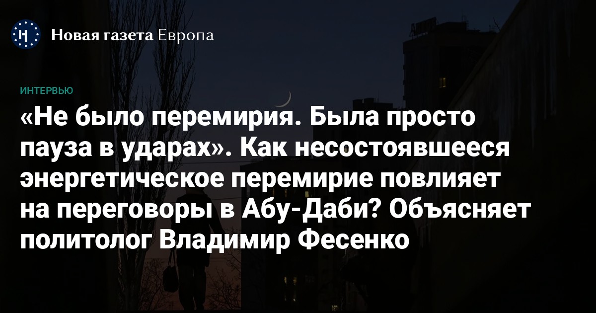 В среду, 4 февраля, должен стартовать очередной раунд трехсторонних переговоров Украины, России и США в Абу-Даби. Предполагалось, что он начнется 1 февраля, но встреча была перенесена. Дату 1 февраля Кремль также называл как последний день энергетического перемирия между Украиной и Россией. Началось оно, напомним, по просьбе Дональда Трампа 30 января и должно было, по версии американского президента, продлиться неделю, но у Москвы своя арифметика и свой календарь. Россия вновь ударила по украинской энергетике не сразу 1 февраля, а в ночь со 2-го на 3-е, когда мороз был особенно сильный. Что это было — действительно перемирие по просьбе Трампа или стандартный российский перерыв в атаках для накопления сил, какие выводы может сделать Украина из четырех дней «перемирия», как это повлияет на переговоры в Абу-Даби и может ли на них вообще что-то повлиять — объясняет украинский политолог, глава Центра прикладных политических исследований «Пента» Владимир Фесенко.